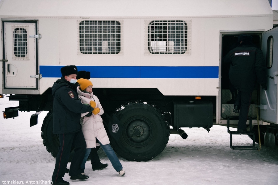 Anna Chagina blir teken av politiet i Tomsk, 6. mars 2022. Anton Kharin, Tomsk i Sibir